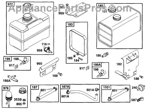 Parts for Briggs & Stratton 222417-0707-01: Fuel Tank Grp Parts