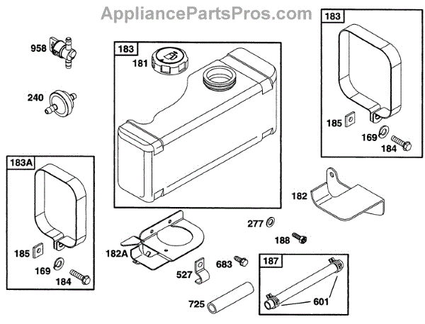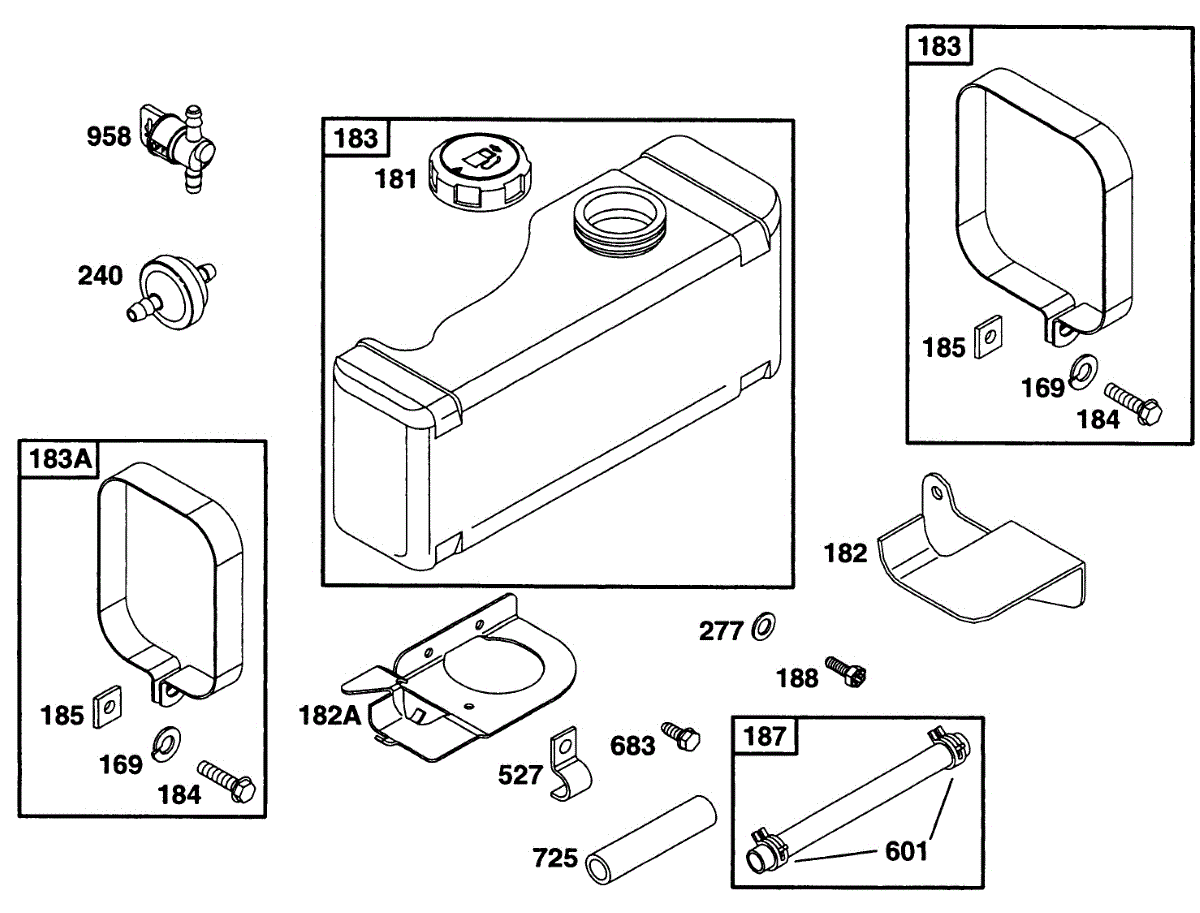 Parts for Briggs & Stratton 28C707-0114-01: Fuel Tank Grp Parts