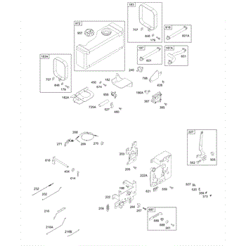 Parts for Briggs & Stratton 28B707-1201-E1: Fuel Tank, Hoses, Pump, Controls Parts