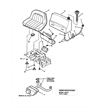 Parts for Snapper 421622BVE: Fuel Tank / Operator's Seat / Muffler Parts