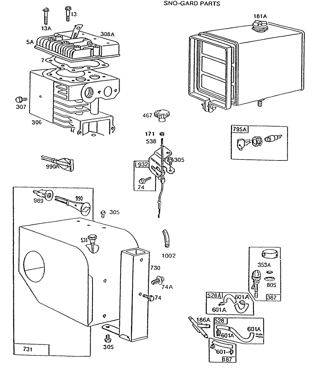 Parts for Briggs & Stratton 190436-3059-01: Fuel Tank,Sno-Gard,Primer Parts
