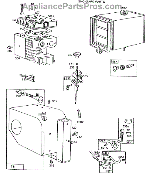 Parts for Briggs & Stratton 190437-2841-01: Fuel Tank,Sno-Gard,Primer Parts