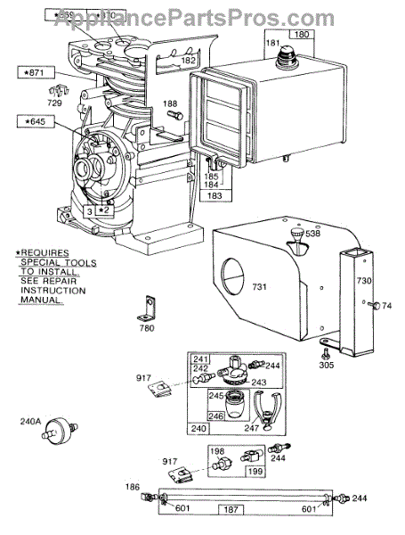Parts for Briggs & Stratton 190452-1717-99: Fuel Tank,Sno-Gard,Primer Parts