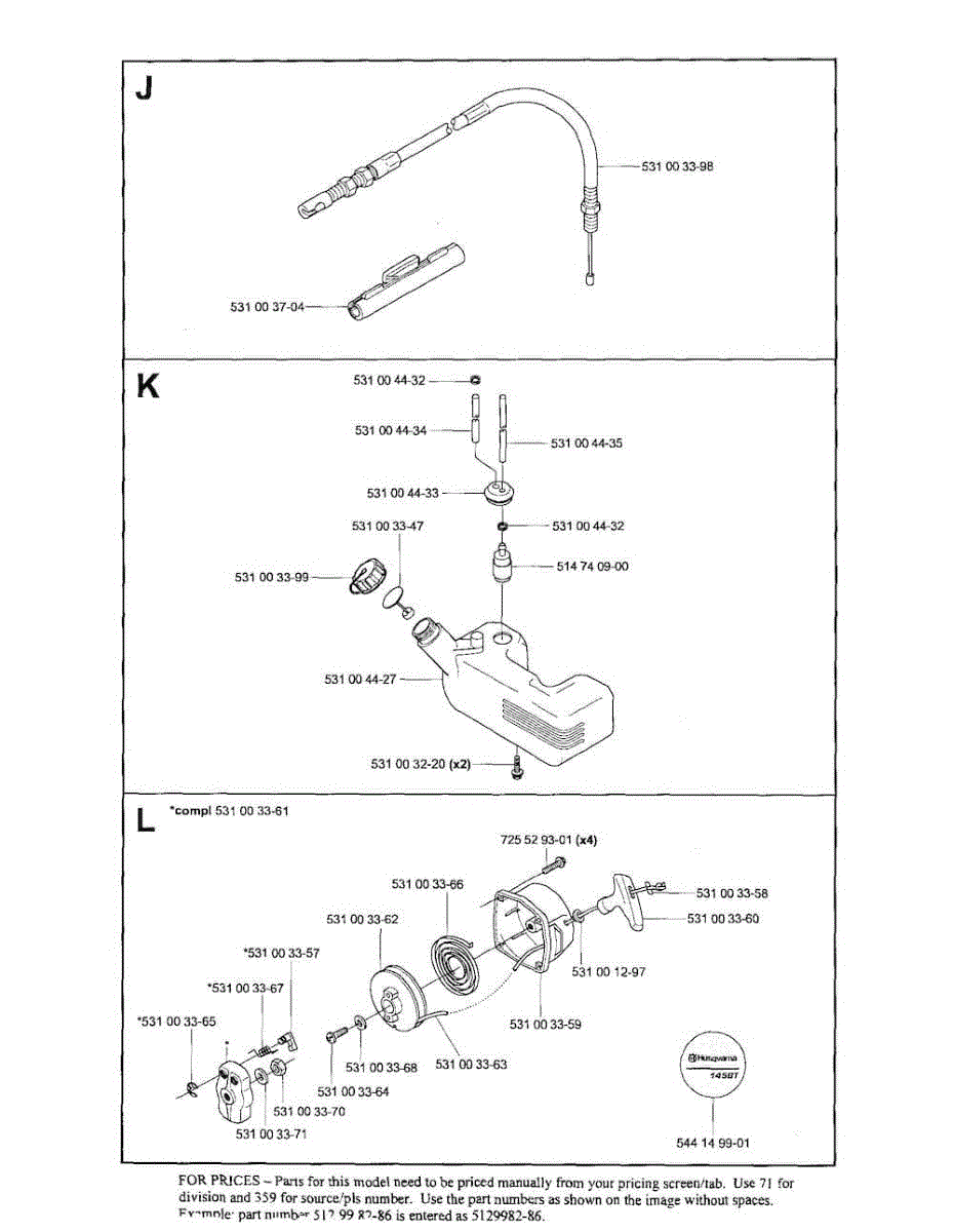 Parts for Husqvarna 145BT: Fuel Tank / Throttle Cable Parts