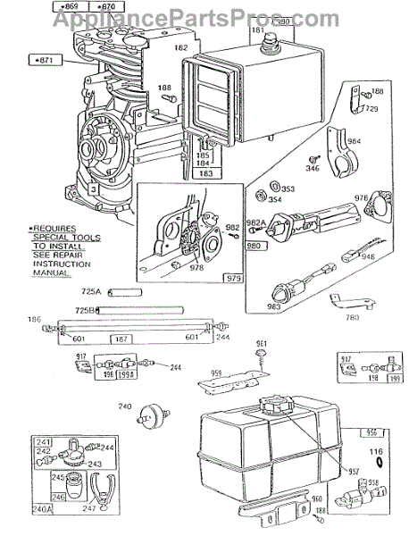 Parts for Briggs & Stratton 195437-0652-04: Fuel Tanks, Oil Gard, Hoses Parts