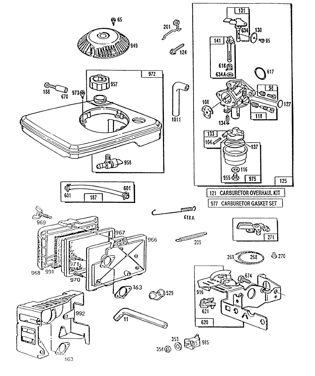 Parts for Briggs & Stratton 090788-0065-01: Fueltank Assy,A / C,Carburetor Parts