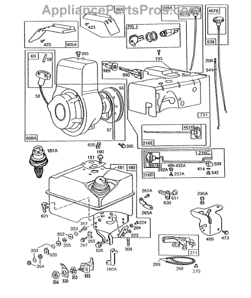 Parts for Briggs & Stratton 130232-1743-02: Fueltankassy,Guards,Controls Parts