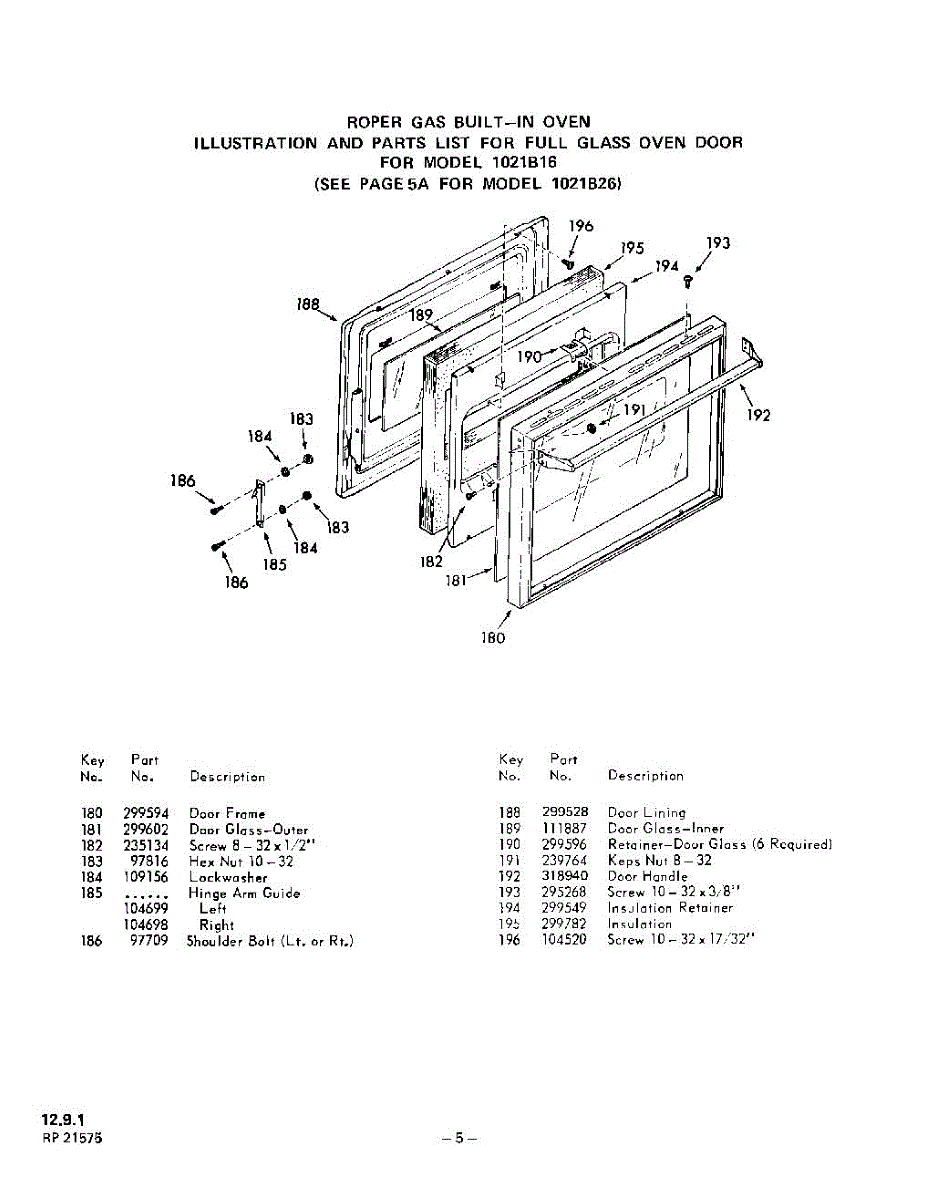 Parts for Whirlpool 1021B16: 06 - Full Glass Oven Door (Model 1021B26 Parts