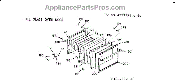 Parts for Kenmore 103.4227393 (1034227393, 103 4227393): Full Glass Oven Door Parts