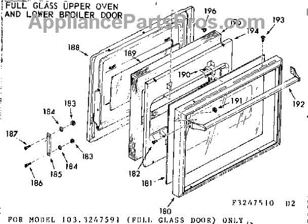 Parts for Kenmore 103.3247540 (1033247540, 103 3247540): Full Glass Upper Oven & Lower Broiler Door Parts