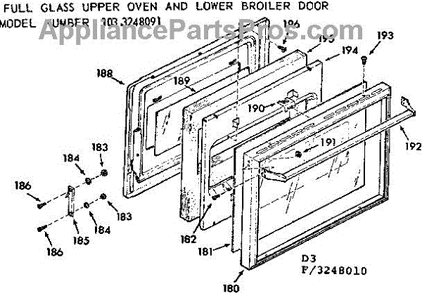 Parts for Kenmore 103.3248010 (1033248010, 103 3248010): Full Glass Upper Oven And Lower Broiler Door Parts