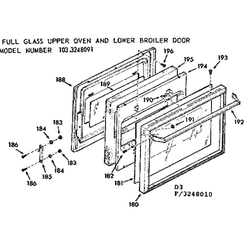Parts for Kenmore 103.3248091 (1033248091, 103 3248091): Full Glass Upper Oven And Lower Broiler Door Parts
