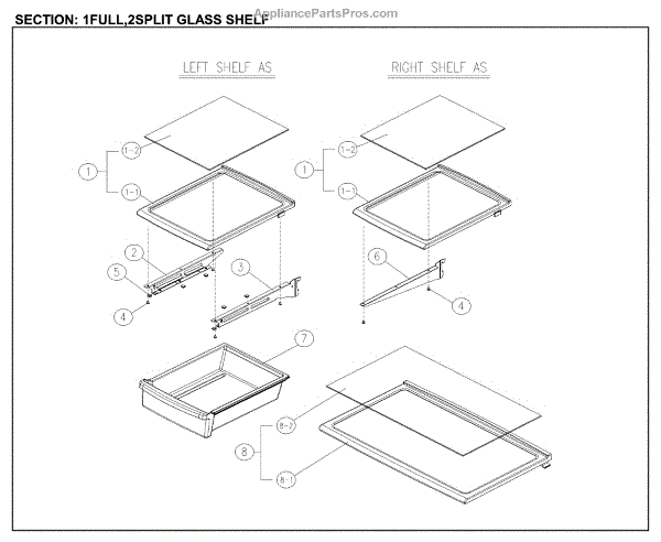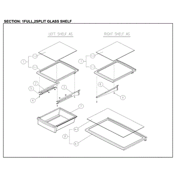 Parts for Kenmore 111.61202712 (11161202712, 111 61202712): Full / Split Glass Shelf Parts