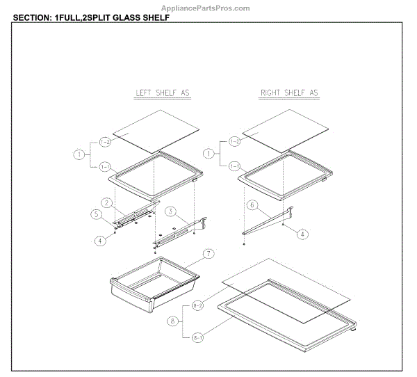 Parts for Kenmore 111.61219612 (11161219612, 111 61219612): Full / Split Glass Shelves Parts
