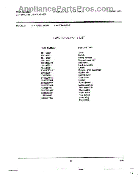 Parts for Frigidaire 763: Functional Parts