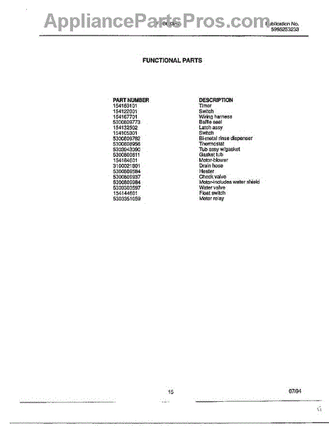 Parts for Frigidaire FDB663RB: Functional Parts
