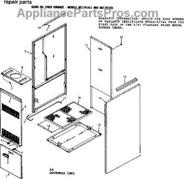 Parts for Kenmore 867.741421 (867741421, 867 741421): Furnace Body Parts
