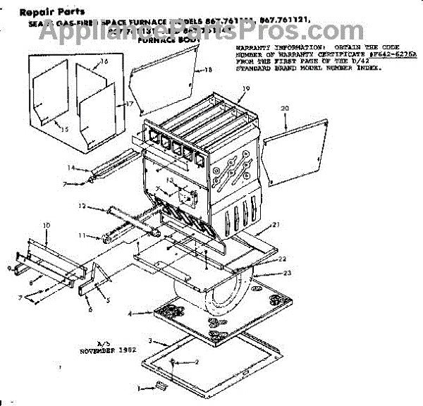 Parts for Kenmore 867.761141 (867761141, 867 761141): Furnace Body Parts