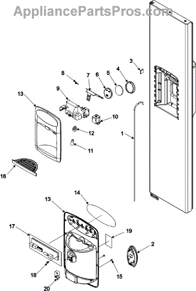 The Ice Chute Door is an OEM replacement part for Whirlpool side-by-side refrigerators. It provides access to the dedicated ice and water storage and dispensing compartment located on the refrigerator door.