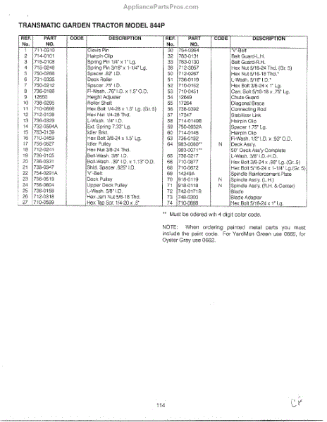 Parts for Mtd 14AJ844H401: 46" Garden Tracto-Con't On Card 36 Page 3 Parts