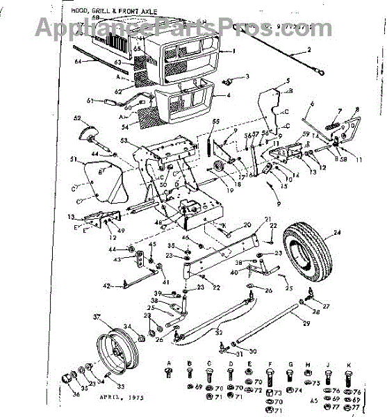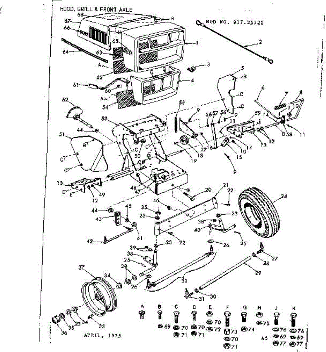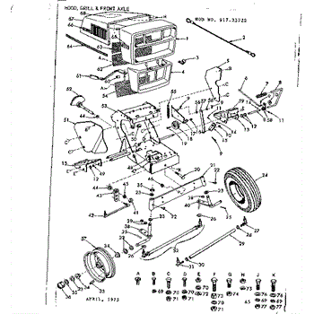 Parts for Craftsman 91725722: 10 Garden Tractor / Hood, Grill And Front Axle Parts