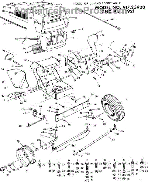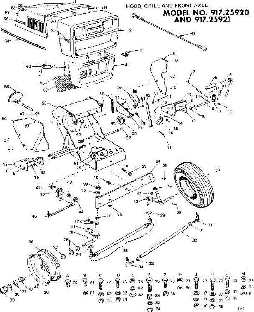Parts for Craftsman 91725920: 10X Garden Tractor / Hood, Grill & Front Axle Parts