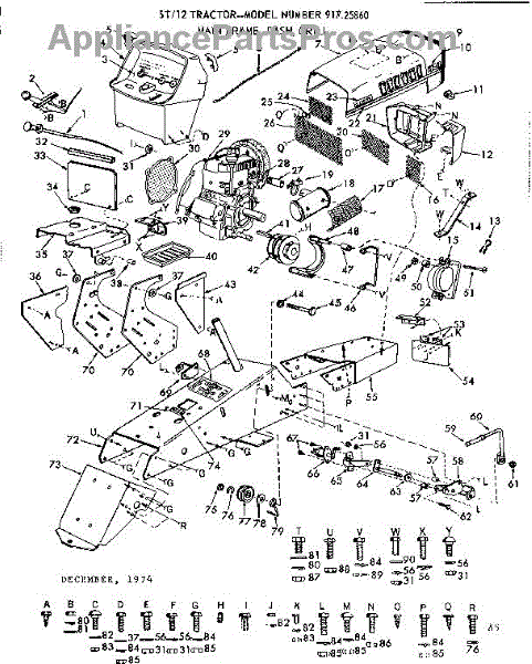Parts for Craftsman 91725860: 12 Garden Tractor / Main Frame, Dash, Grill Parts