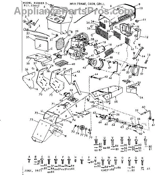 Parts for Craftsman 91725862: 12 Garden Tractor / Main Frame, Dash, Grill Parts