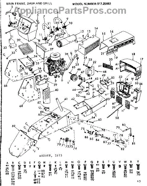 Parts for Craftsman 91725883: 16 Garden Tractor / Main Frame, Dash And Grill Parts