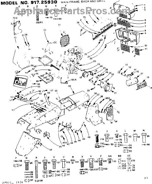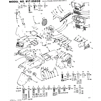 Parts for Craftsman 91725930: 12 Garden Tractor / Main Frame, Dash And Grill Parts