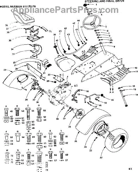 Parts for Craftsman 91725170: 6 Garden Tractor / Steering And Final Drive Parts