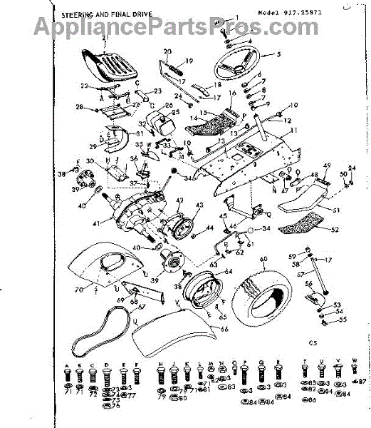 Parts for Craftsman 91725871: 16 Garden Tractor / Steering And Final Drive Parts
