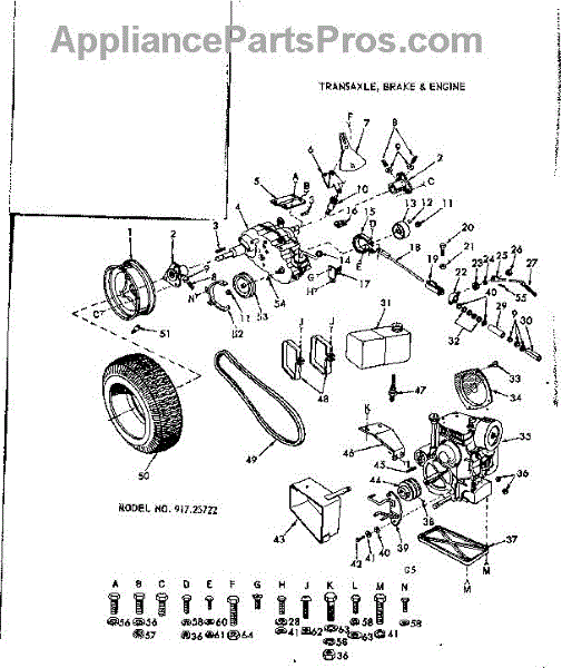 Parts for Craftsman 91725722: 10 Garden Tractor / Transaxle, Brake And Engine Parts