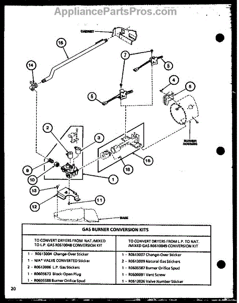 Parts for Amana LG2412/P7762218W: Gas Burner Conversion Kits (Lg1112 / P7762216w) (Lg2412 / P7762218w) (Lg2512 / P7762220w) Parts
