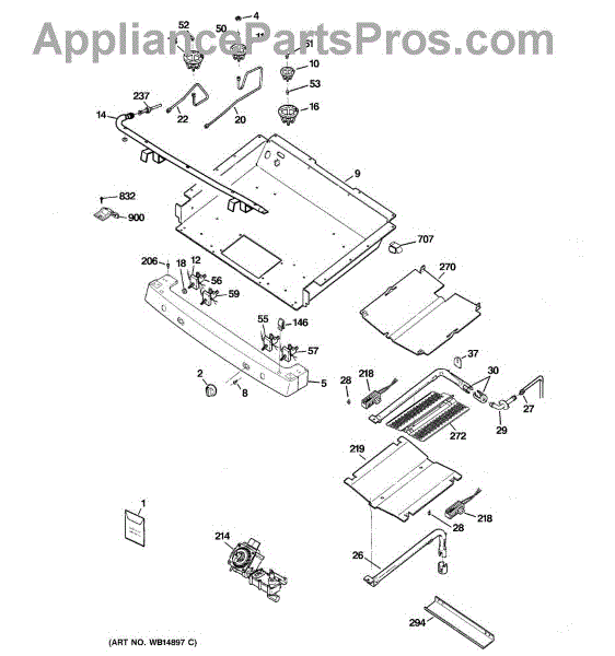 Burner box for gas ranges. Installs beneath the cooktop to house burner components. Replace if cracked, warped, rusted, or damaged from heat exposure.