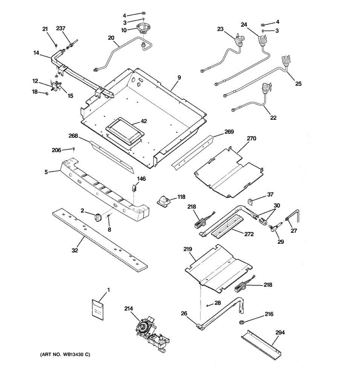 Manifold pipe for gas ranges. Distributes gas from the supply line to individual burner valves. Replace if cracked, corroded, or leaking gas.