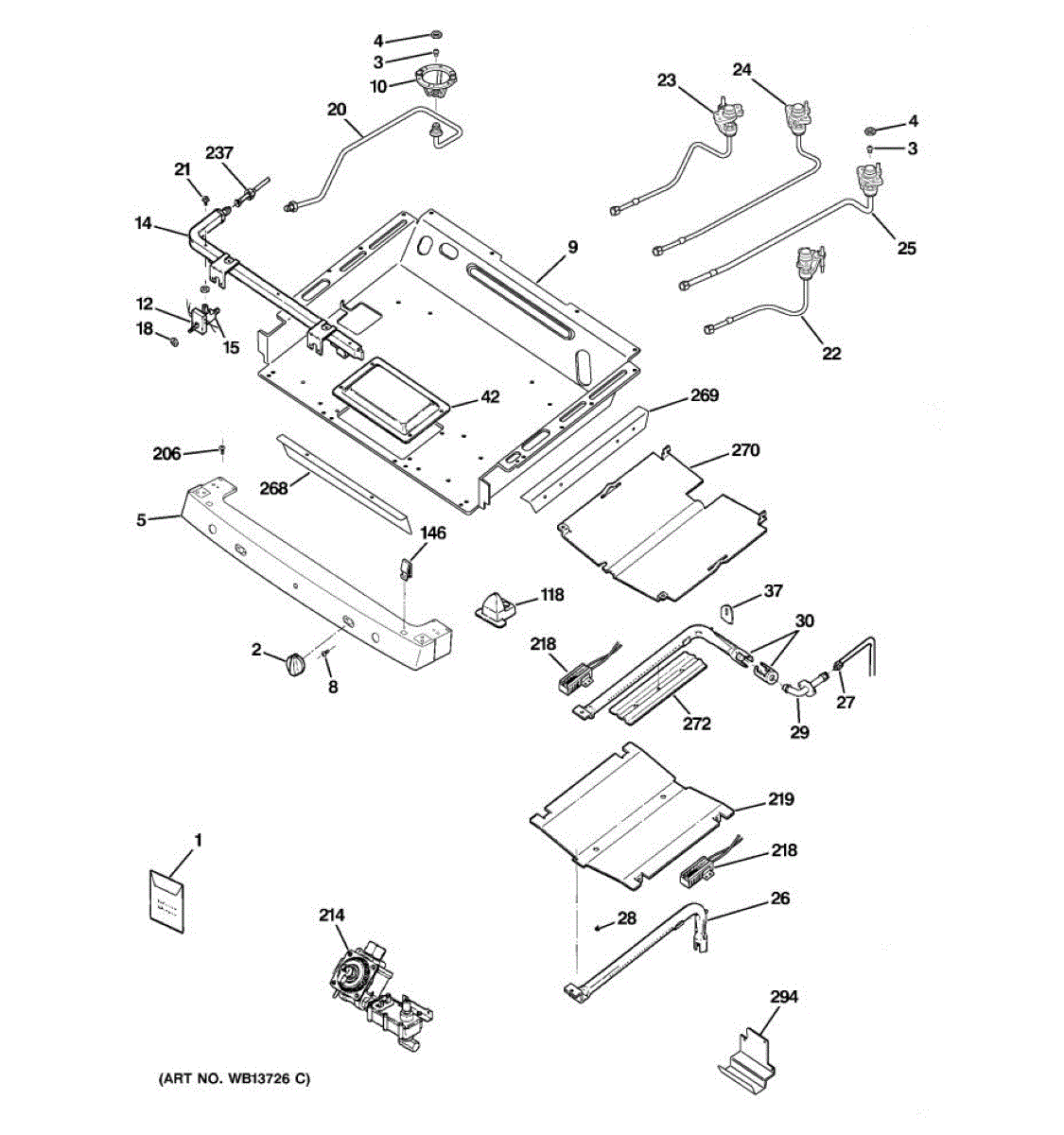 Broil shield for gas ranges. Mounts inside the oven cavity to protect components from direct heat. Replace if cracked, warped, or damaged.