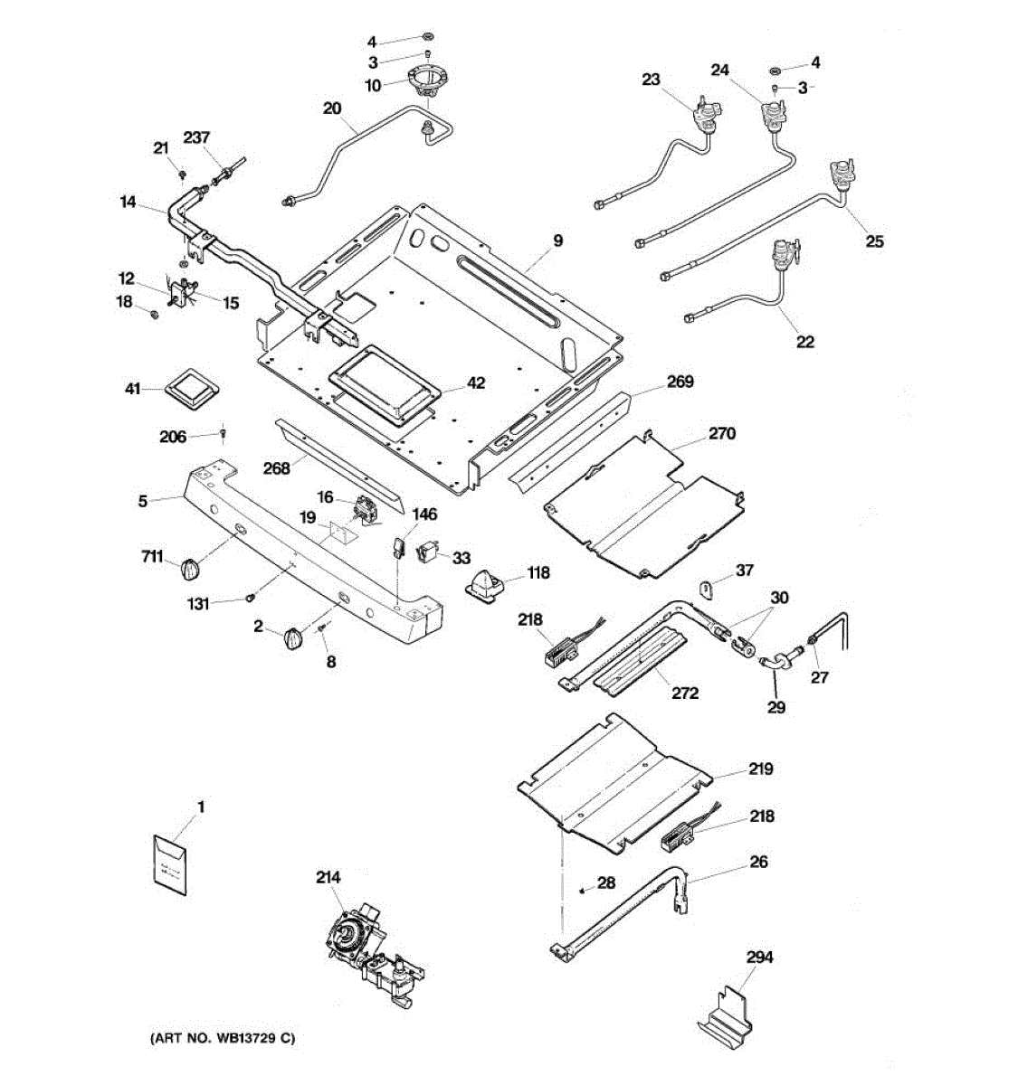 This gas range liquid propane conversion kit includes the orifices for all the top burners.