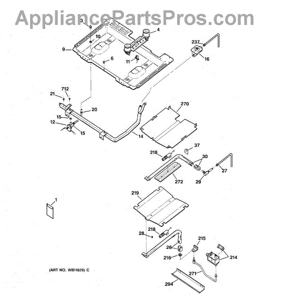Parts for Ge JGBP24BEA1AD: 01 - Gas & Burner Parts