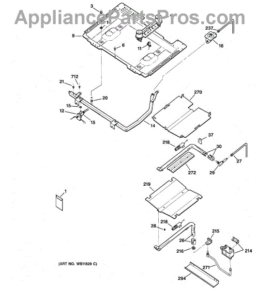 Parts for Ge JGBP25BEC5WH: 01 - Gas & Burner Parts