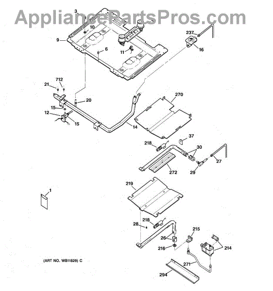 Parts for Ge JGBP26AEA3AA: 01 - Gas & Burner Parts