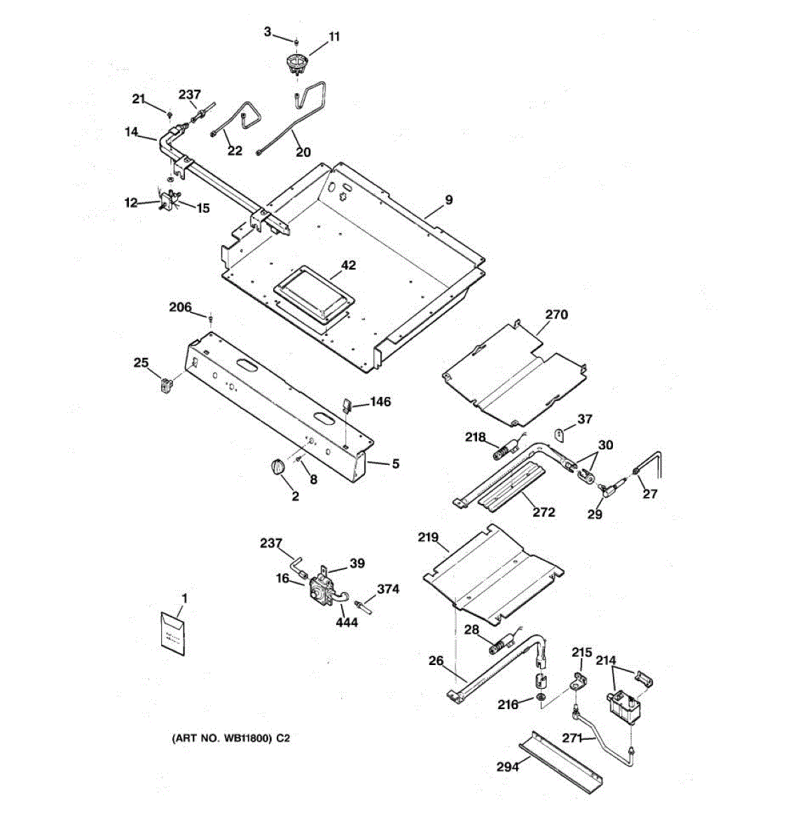 Broil shield for gas ranges. Mounts inside the oven cavity to protect components from direct heat. Replace if cracked, warped, or damaged.