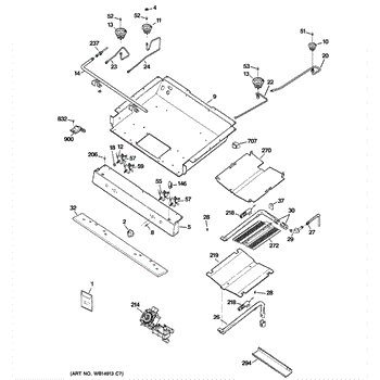 Burner box for gas ranges. Installs beneath the cooktop to house burner components. Replace if cracked, warped, rusted, or damaged from heat exposure.