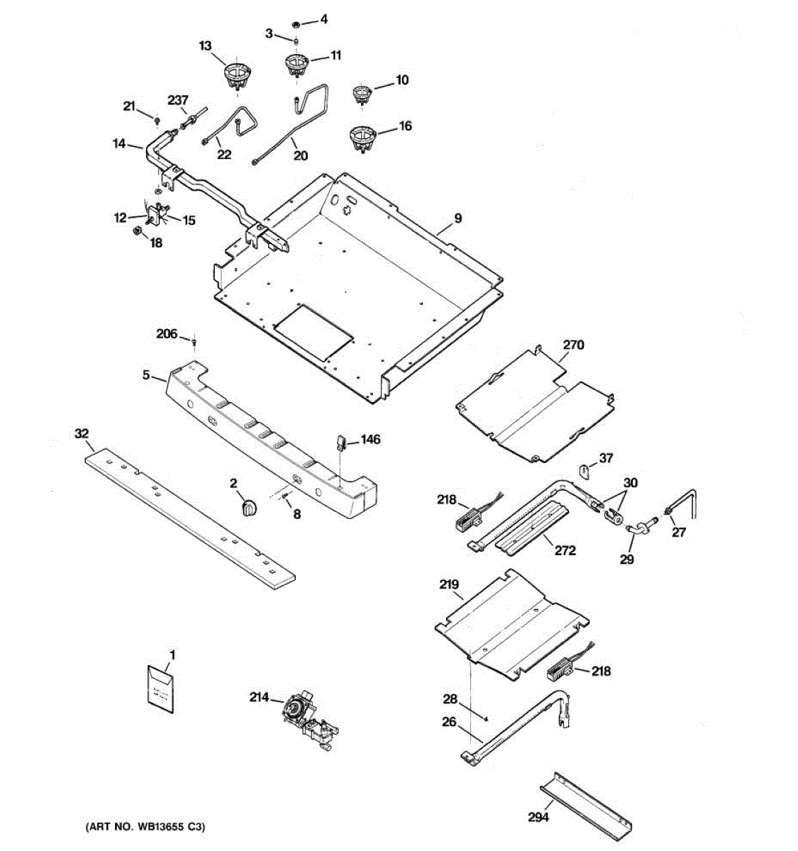 Broil shield for gas ranges. Mounts inside the oven cavity to protect components from direct heat. Replace if cracked, warped, or damaged.