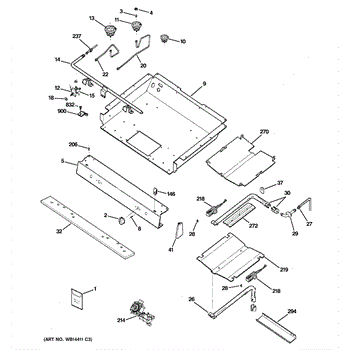 This bracket secures the cooktop/main top to the appliance chassis to keep the surface stable and properly aligned. Replacing a bent or missing bracket can eliminate looseness, rattles, and visible gaps so the top seats correctly.