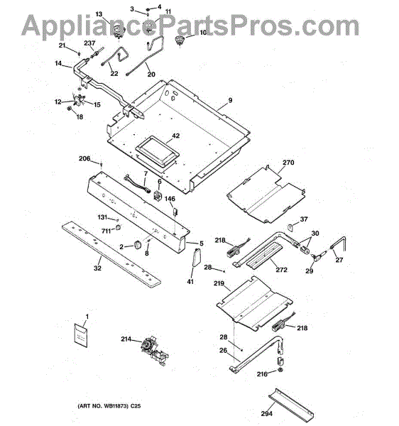 The Front orifice holder is an OEM replacement part for GE gas ranges/cooktops. This part is located under the cooktop, beneath the burner. It supplies the gas to the stovetop and houses the natural gas or propane orifice. Causes of a malfunctioning front orifice holder can be worn over time, cracks or damage from accidental impacts or mishandling, or blockages within the gas channels. Symptoms of a bad front orifice holder include: