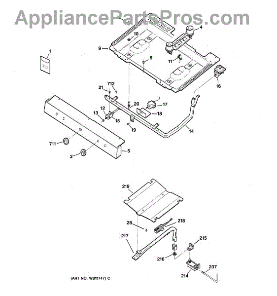 Parts for Ge JGBS04BEW2AD: 01 - Gas & Burner Parts