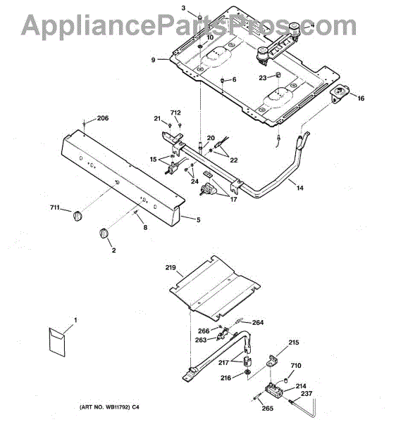 Parts for Ge JGBS04BPA2CT: 01 - Gas & Burner Parts