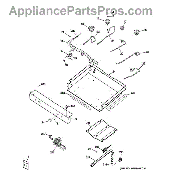 This bracket secures the cooktop/main top to the appliance chassis to keep the surface stable and properly aligned. Replacing a bent or missing bracket can eliminate looseness, rattles, and visible gaps so the top seats correctly.