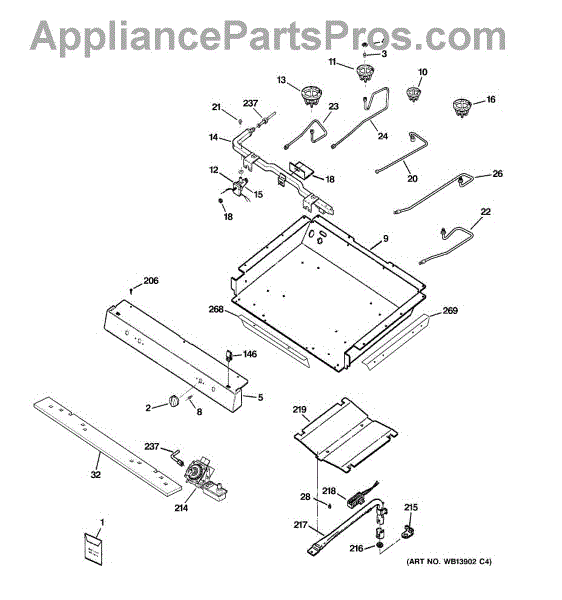 This bracket secures the cooktop/main top to the appliance chassis to keep the surface stable and properly aligned. Replacing a bent or missing bracket can eliminate looseness, rattles, and visible gaps so the top seats correctly.